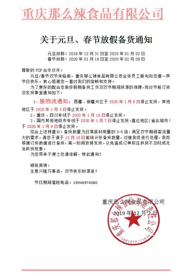 關(guān)于那么辣春節(jié)物流停運(yùn)發(fā)貨通知